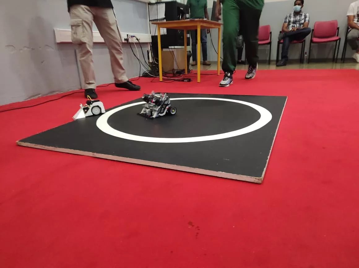 Chaque robot est activé par une personne et ne doit entamer le combat qu’après 5 secondes. Le but étant de sortir du cercle l’adversaire afin de marquer des points.