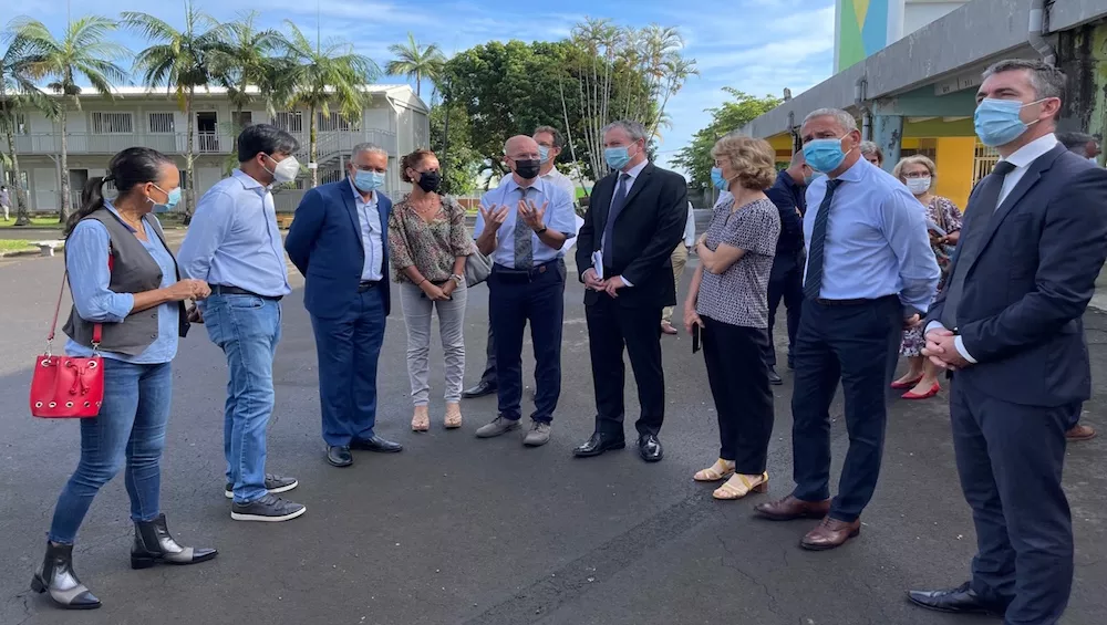 Mais avant de s’installer dans la classe, les officiels qui ont effectué leur rentrée de l’après-Batsiraï dans cet établissement de Saint-André, ont d’abord eu droit à une rapide visite des lieux grâce au principal du collège Xavier Labrousse avec, à ses côtés, Muriel Martin,l a responsable des Travaux au Département. Il faut en effet préciser que cet établissement est en travaux depuis bientôt 3 ans. D’abord l’accueil et la visite. Notre journaliste Yves Mont-Rouge était sur place :