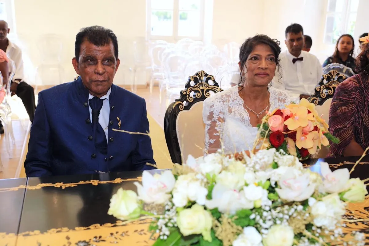 Moutou et Marie se souviennent comme si c’était hier du jour où ils se sont dits « Oui » à la Mairie et à l’église de Saint-André. Ils se sont rencontrés en juillet 1972 dans un bal organisé sur la place de la Mairie et le 27 décembre nous étions mariés. Ensemble, ils ont eu 6 enfants 5 filles et un garçon. Aujourd’hui à la retraite, ils sont les heureux grands-parents de 12 petits-enfants. Durant sa vie active, Moutou était maçon tandis que Marie était employée communale et s’occupait également de l’éducation des enfants. Pour célébrer comme il se doit cette étape importante dans leur vie de couple, ils ont décidé de renouveler leurs vœux un moment que le couple attendait depuis longtemps. Toute la famille s’est ensuite réunie pour faire la fête avec les amoureux et partager leur bonheur.