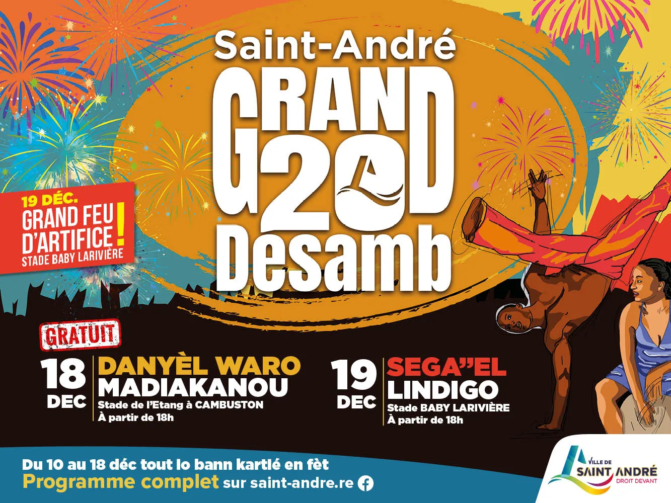 Une programmation riche dans tous les quartiers de la ville sera proposée aux saint-andréens du 10 aux 18 décembre (atelier de fabrication d’instruments de musique, initiation à la musique , jeux Lontan, ateliers de contes sur les origines du 20 Désamb, spectacles de musique et de danse…).