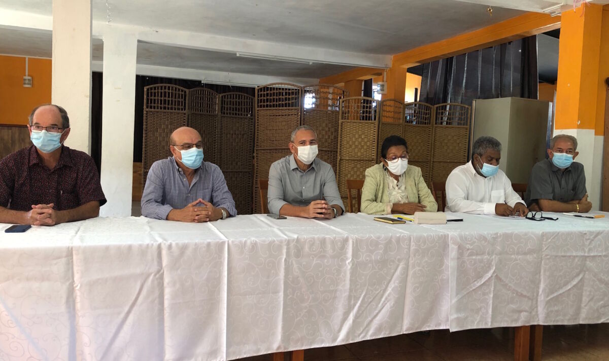 Il y a eu d’abord un communiqué de presse, mardi soir pour annoncer publiquement le soutien des « responsables socialistes » à la tête de liste Huguette Bello. Un communiqué signé de Wilfrid Bertile, ancien député-maire socialiste, Saint-Philippe, Philippe Le Constant, conseiller départemental et municipal socialiste à Saint-Benoît, Jean-Luc Saint-Lambert, ancien maire et conseiller municipal socialiste à Plaine des Palmistes, Céline Sitouze, conseillère municipale à Sainte-Marie et conseillère communautaire à la CINOR et Dominique Virassamy-Macé de « Pour un nouveau Cap (PNC) à Saint-Pierre. Suite au communiqué, c’est Huguette Bello en personne qui s’est déplacée dans l’Est, hier, mercredi 12 mai 2021, pour tenir une conférence de presse. C’était hier après-midi, à Bras-Fusil (Saint-Benoit), à 14 heures. Comme vous vous le voir sur la photo ci-dessous, la présidente de PLR (Pour La Réunion), maire de Saint-Paul et conseillère régionale de l’opposition était entourée de Jean-Luc Saint-Lambert (secrétaire de section du PS à la Plaine-des-Palmistes), de Wilfrid Bertile (Saint-Philippe), de Joé Bédier (maire de Saint-André), de Jean-Hugues Ratenon (député de  La France Insoumise) et de Philippe Le Constant (secrétaire de la section PS de Saint-Benoit)