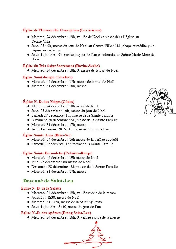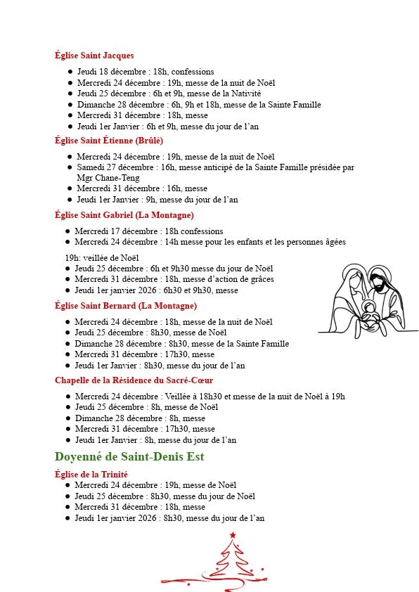 Retrouvez l’ensemble des rendez-vous liturgiques organisés dans le cadre des fêtes de fin d’années : horaires des confessions et des messes de Noël, ainsi que des célébrations de fin d’année pour la période 2025-2026.
