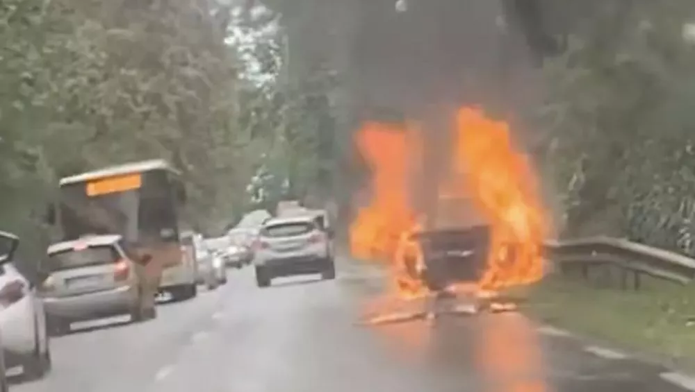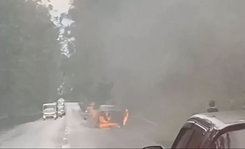 14h : une voiture en feu sur la route des plaines, dans la ligne droite après le virage de l’Echo, en direction de la Plaine des Palmistes.