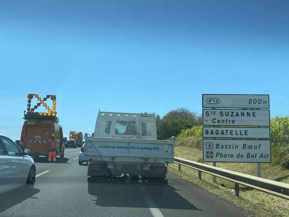 14 : 45 : Un accident a eu lieu sur la RDT, après la bretelle avant la Petite Ravine, direction St Denis, un conducteur se serait endormi au volant. Dégâts matériels.