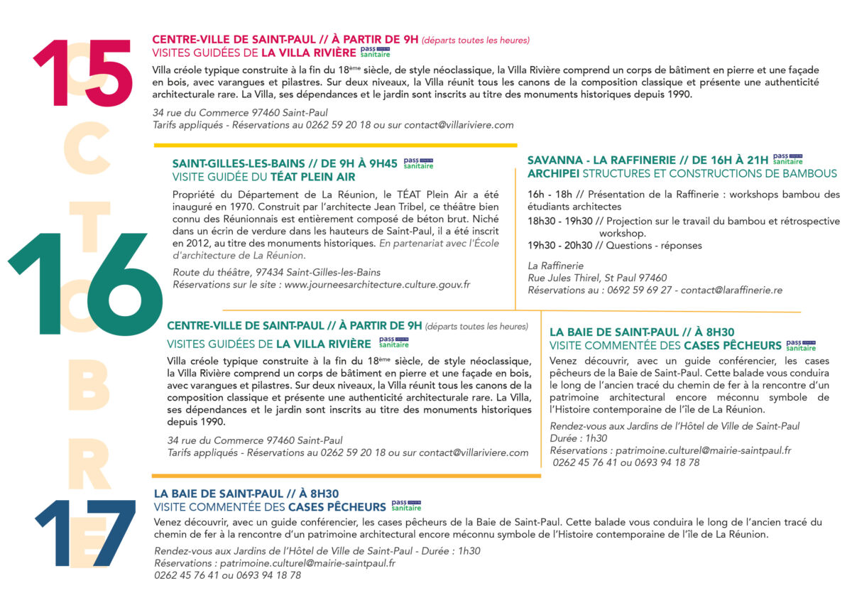 La 6e édition des Journées nationales de l’architecture aura lieu les 15, 16 et 17 octobre 2021. Ces journées poursuivent l’objectif de sensibiliser le grand public aux enjeux de ce domaine culturel majeur qui façonne nos territoires. L’édition 2021 interroge la thématique cruciale du « vivre ensemble ». Découvrez sans plus attendre le programme à St-Paul :
