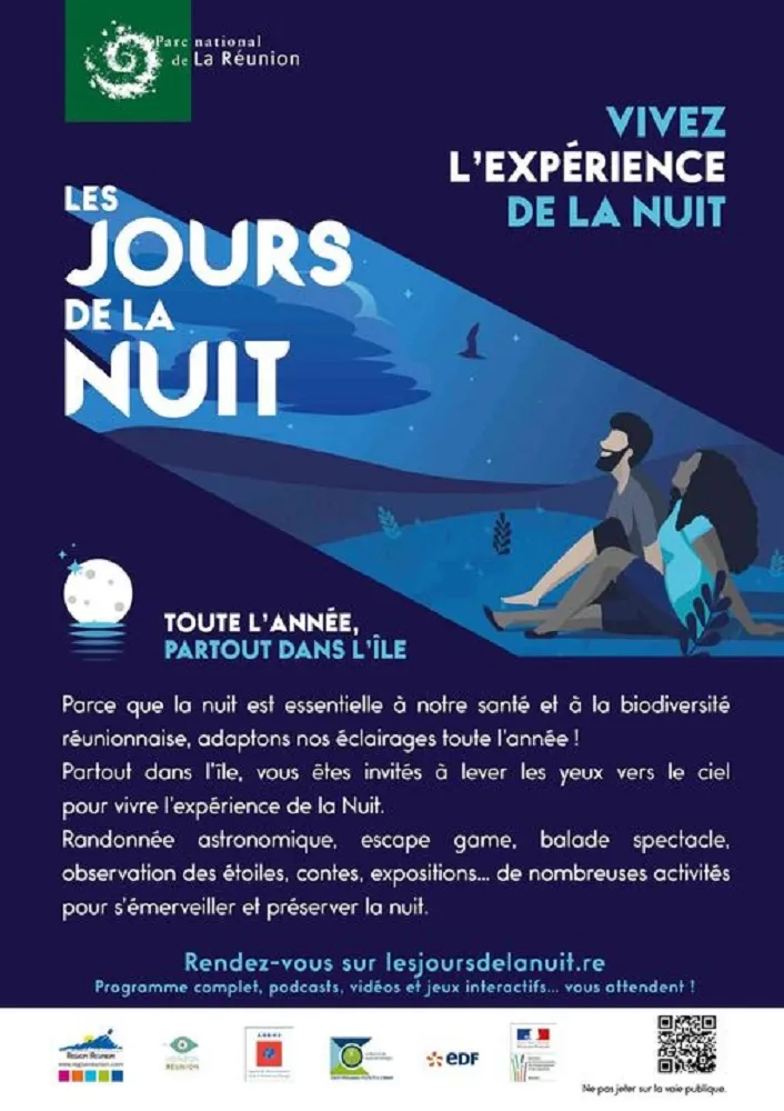 Les jours de la nuit est une démarche de sensibilisation à destination des Réunionnais et est organisée chaque année par le Parc national de La Réunion. Cette opération a pour objectif de sensibiliser à la pollution lumineuse, ses effets négatifs et les moyens de la réduire. Un nombre croissant de partenaires, publics et privés, s’engagent chaque année par le biais de campagnes d’extinction de l’éclairage et d’actions de sensibilisation.