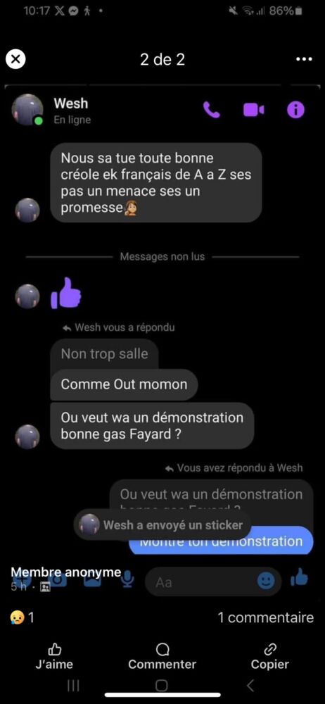 Ces menaces, publiées sous forme de textes, d’images et parfois de vidéos, véhiculent des propos hostiles et appellent à des actes de violence. Certains messages incitent ouvertement à commettre des actes graves contre des individus ciblés en raison de leur origine ou de leur nationalité. Cette situation provoque une vive inquiétude parmi les habitants de La Réunion, d’autant plus que ces menaces se répandent rapidement et sont relayées par plusieurs utilisateurs.