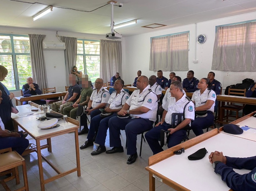 Le stage a débuté en présence de l’ambassadrice de France aux Seychelles, Mme Olivia BERKELEY-CHRISTMANN et du chef de la police seychelloise, M le Commissaire Ted BARBE.
