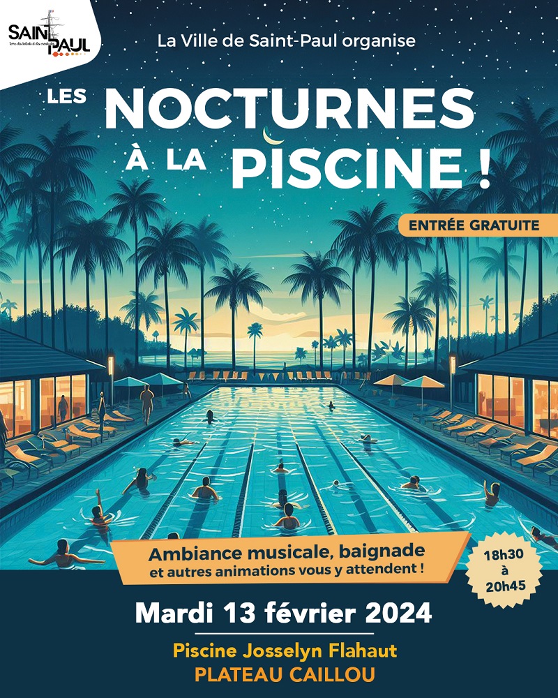 Vous cherchez une manière rafraîchissante de profiter de vos soirées estivales ? Ne cherchez pas plus loin ! La ville de Saint-Paul vous invite à une soirée spéciale aux Nocturnes à la piscine municipale de Plateau Caillou.