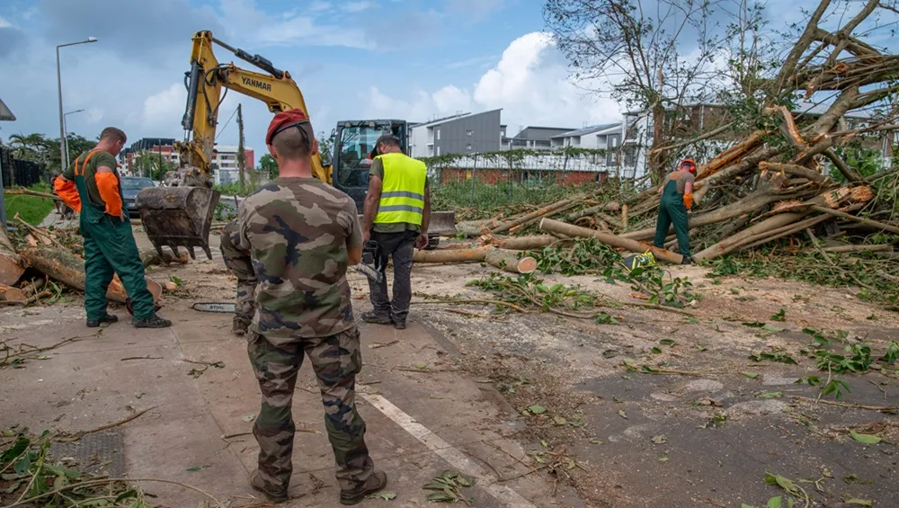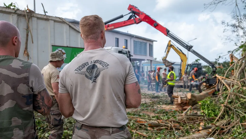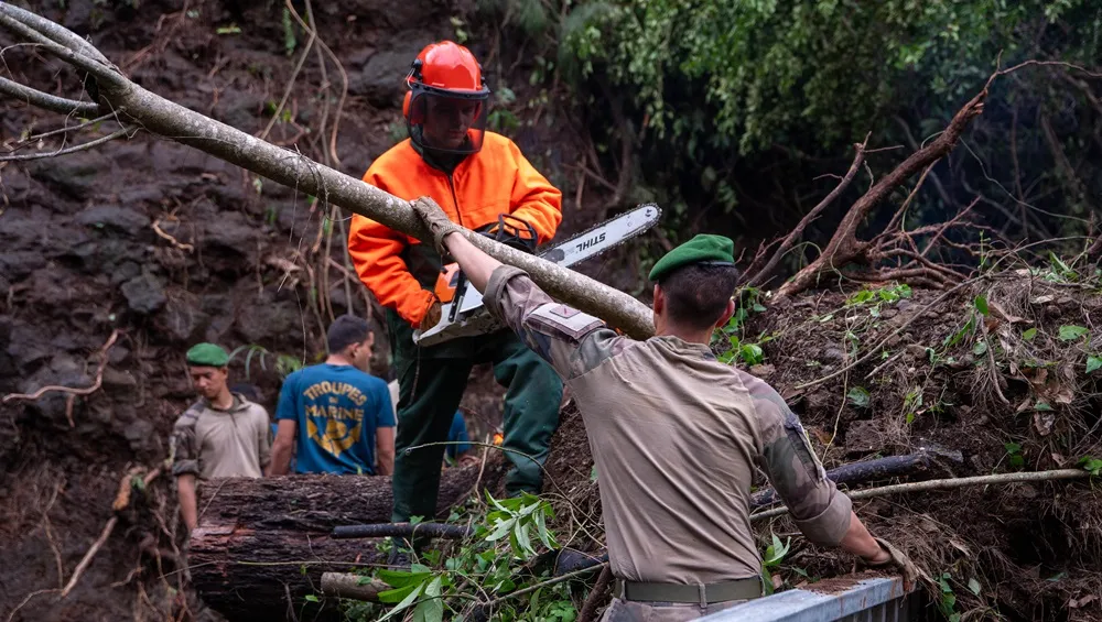 Depuis le passage du cyclone tropical Garance sur l’île de La Réunion le vendredi 28 février 2025, les forces armées ont été massivement mobilisées pour venir en aide à la population. À la demande de la préfecture, 500 militaires des Forces armées de la zone sud de l’océan Indien (FAZSOI), dont les parachutistes du 2e régiment de parachutistes d’infanterie de marine (2e RPIMa), ont été déployés sur le terrain. Leur mission principale : dégager les axes routiers encombrés par les débris et permettre la circulation des secours dans les zones sinistrées. Trois sections issues des 1re et 3e compagnies, renforcées par des éléments de la 13e demi-brigade de la Légion étrangère (13e DBLE), sont intervenues rapidement dans les secteurs les plus touchés, notamment à Saint-Denis, Saint-Benoît, Saint-André et Salazie.