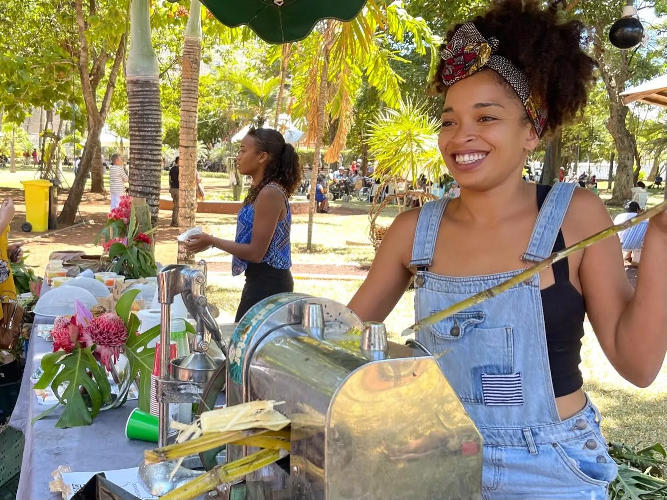 Deux jeunes Sainte-Rosiennes qui débordent d’énergie et de dynamisme avec toujours le souci de bien faire et, surtout, de proposer des produits frais tels que le jus de canne fait sur place et de façon très artisanale (en usant de l’huile de coude), servi avec une tranche de citron et des glaçons. Sans oublier les muffin à la banane ou autres fruits péi (cela va de soi !); Le tout évidemment concocté maison. Mélissa et Marion sont filles d’agriculteur à Sainte-Rose; Outre leurs occupations ponctuelles dans le cadre des manifestations durant les week-ends, comme celle de ce dimanche au Jardin de l’Etat, ces deux « passionnées de la vie » nourrissent de bien beaux projets en matière d’agro-tourisme qu’elles souhaitent concrétiser via leur marque nouvellement créée et qui a pour nom « Banana Koncept Mouv ».