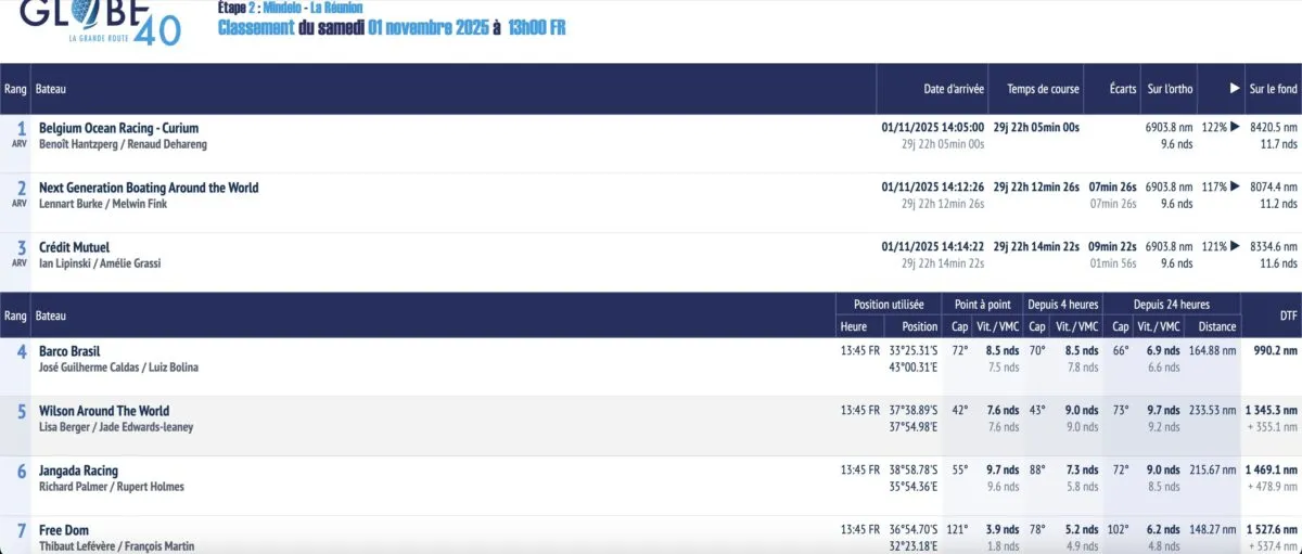 Les 8 concurrents de la course autour du monde « Globe 40 » en approche, précisait cette nuit du 31 octobre la préfecture de la Réunion.