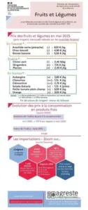 Cette infographie comprend les principaux produits dont les prix sont à la hausse, stables, ou à la baisse sur les marchés forains, l’indice des prix des produits frais publié par l’INSEE et son évolution, la situation de l’importation d’un produit agricole frais à La Réunion.