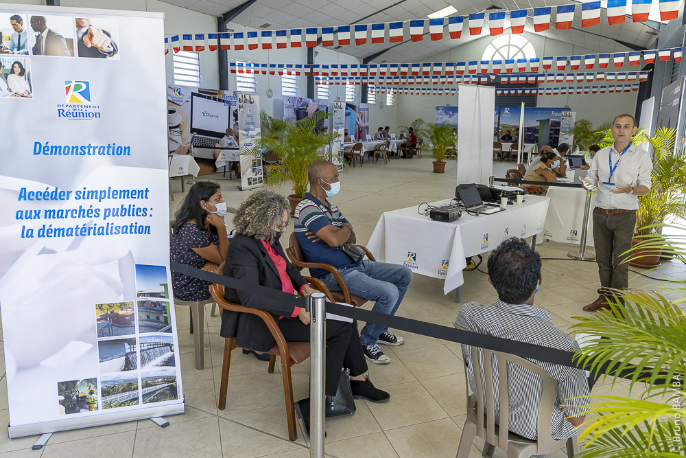 Pour la deuxième année consécutive, le Département organise les Rencontres départementales de la commande publique (RDCP) dans les quatre coins de l’île. Comme son nom l’indique ces rendez-vous s’adressent principalement aux chefs d’entreprises, prestataires et autres artisans souhaitant répondre à des appels d’offres du Conseil départemental. Après l’espace Reydellet au Bas-de-la-Rivière à Saint-Denis en début de semaine, c’est au tour de l’Est d’accueillir les RDCP le jeudi 18 novembre 2021. Au niveau des divers stands, mis à disposition du public au champ de foire de Bras-Panon, des agents des différents services de la Collectivité ont apporté les réponses et les précisions demandées par les visiteurs.