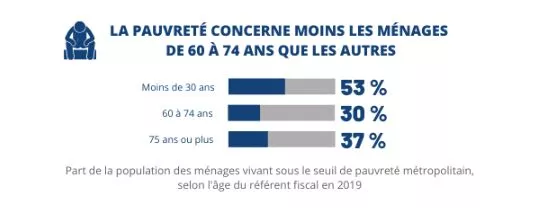 Plus globalement, les seniors de 60 à 74 ans sont moins touchés par la pauvreté monétaire que les ménages plus jeunes, tandis que ceux de 75 ans ou plus le sont autant. Les ménages âgés sont en revanche trois à quatre fois plus nombreux à être pauvres qu’en France métropolitaine : 30 % le sont parmi les Réunionnais de 60 à 74 ans en 2019.