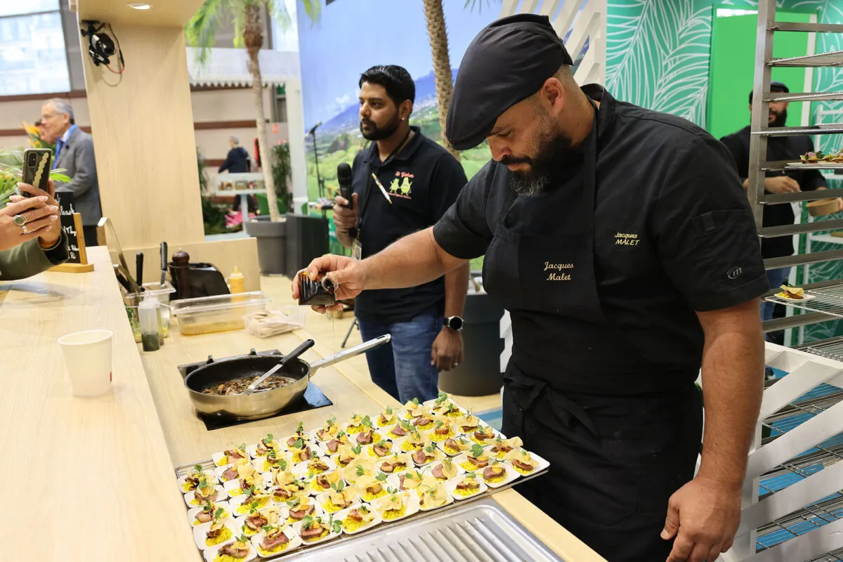 Les visiteurs ont pu déguster des créations raffinées comme le magret de canard laqué au galabé sur un lit d’achard de mangue verte au curcuma. Pour Sébastien Catherine, la cuisine en direct est une expérience immersive, permettant de faire découvrir la richesse des saveurs réunionnaises à travers des plats élaborés sous les yeux du public.