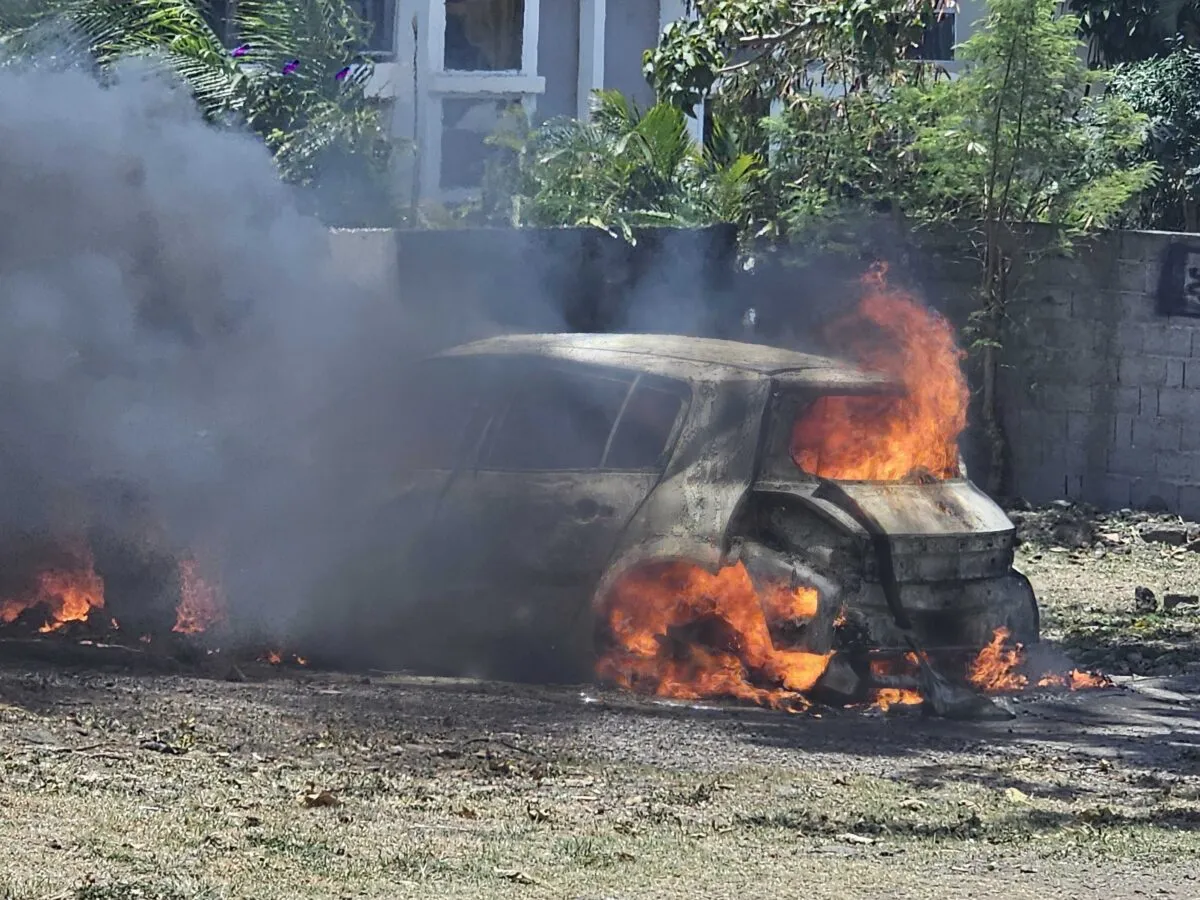Voiture en feu à Sainte-Clotilde ; Pompiers sur place (Vidéo-Photos)