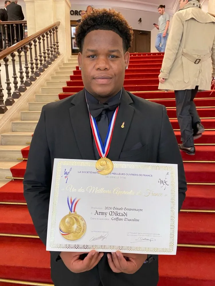 Autre moment fort : lors de la cérémonie nationale organisée à Paris, Bernard Picardo, cette fois aux côtés de Marie-Pierre Lafosse Rivière, présidente de l’UNEC Réunion, a remis à Army Miktadi la médaille d’or du prestigieux concours MAF 2024 (Meilleurs Apprentis de France), dans la spécialité « Coiffure masculine ».