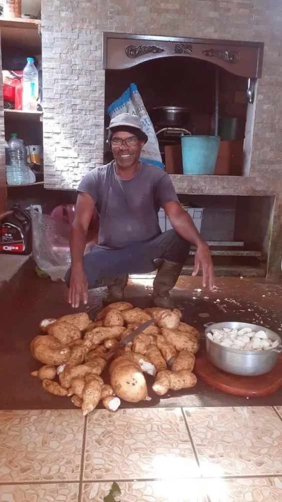 Délicieux à cuisiner, rare à trouver, cette énorme patate chouchou a été sortie de terre par l’ex leader du Groupe Aim A Nou : Nikaise Lartin ! Ce dernier n’a pas hésité à en tronçonner une première partie pour le cuire en mode traditionnel : eau, sel , poivre et pi c’est tout !