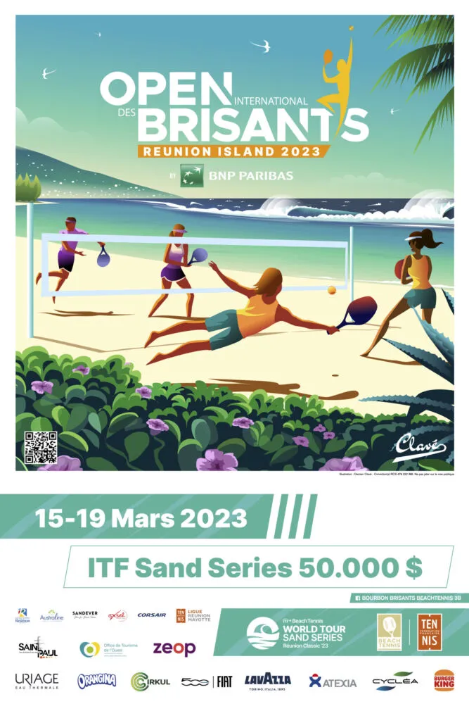 Ainsi, 80 joueuses et joueurs de 20 nationalités différentes se confronteront sur le sable des Brisants. Ambiance garantie ! Le club organisateur, le Bourbon Brisants Beachtennis 3B, reste aux manettes de cet événement proposé sur le territoire saint-paulois. Découvrez ci-dessous l’affiche de l’édition 2023 créée par Damien CLAVÉ.