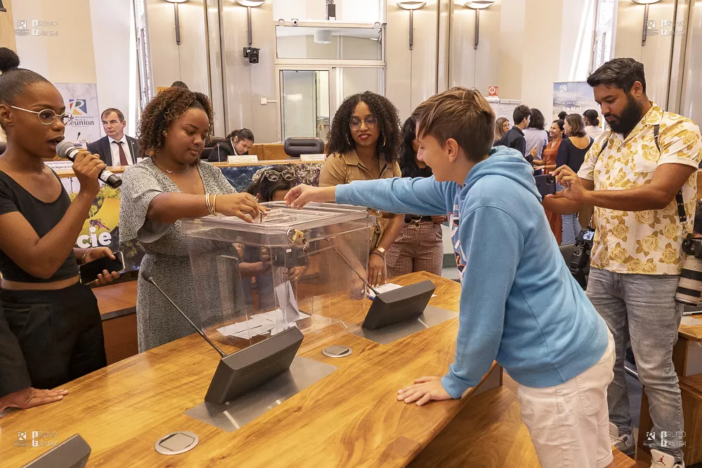 A l’issue du vote des 75 représentants de tous les collèges publics et privés de l’île, c’est Louna Fiarda, qui a été élue présidente du Conseil départemental des jeunes pour 2022/2023, ce 25 novembre à l’Hémicycle du Palais de la Source. Cette élève du collège La Salle Saint-Charles à Saint-Pierre a obtenu 21 voix et succède ainsi à la présidente sortante Emilie Dequelson du collège Bory de Saint Vincent de Saint-Philippe. Margot Duffour (collège du Bernica) et Charlotte Palmas (collège Saint-Charles) qui ont obtenu 10 voix chacune, sont les vice-présidentes de cette instance démocratique, permettant aux collégiens de faire l’expérience d’une vraie mandature en tant qu’élus et de devenir des citoyens responsables de leur avenir.