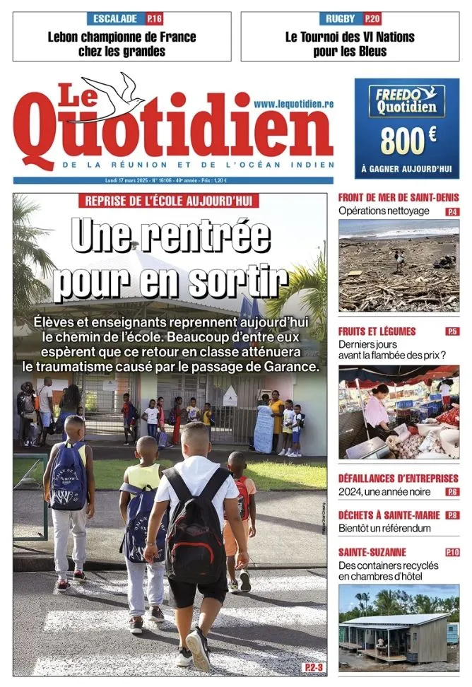 La mer devient très forte avec une houle qui s’est amplifiée durant la nuit pour se situer vers 3 mètres 50 ce matin. Cette houle continue de s’accentuer pour se situer vers 4 mètres 50 l’après midi. Le Pic de houle est attendu au moment de la marée haute, renforçant ainsi les impacts possibles à la côte. Les zones concernées s’étendent de la Pointe des Galets à la Pointe de la Table en passant par la Pointe au Sel. La plus grande vigilance est de mise le long du littoral. La mer demeure toutefois agitée entre Saint-Denis et Sainte-Rose en passant par Saint Benoît.