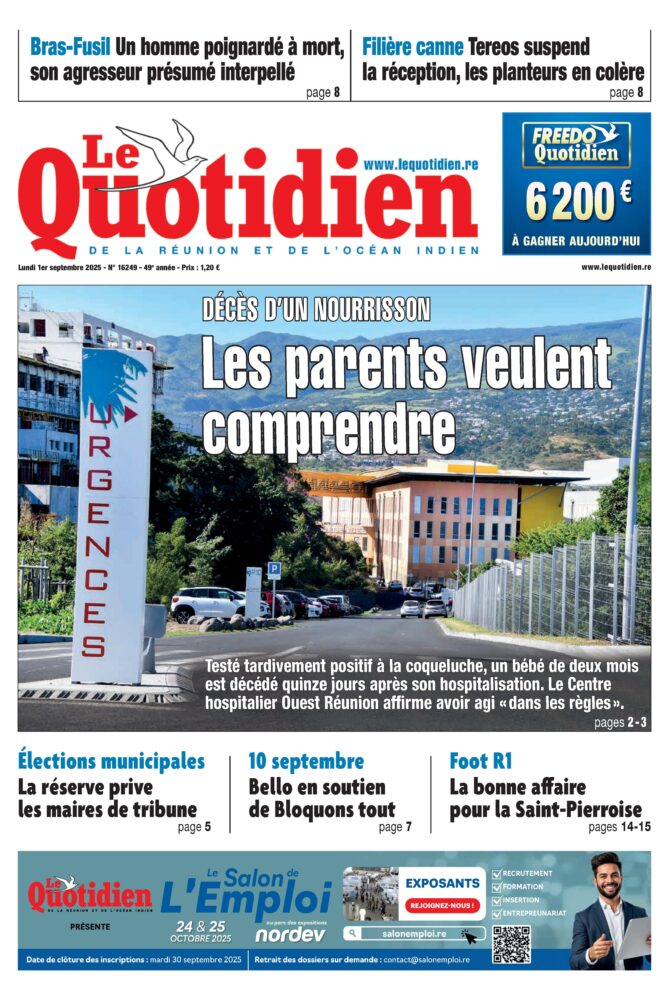 Températures : Saint-Denis 20°/27°, Saint-Pierre 19°/26°, Cilaos 10°/21°, Plaine-des-Palmistes 11°/17°, Maïdo 6°/14°