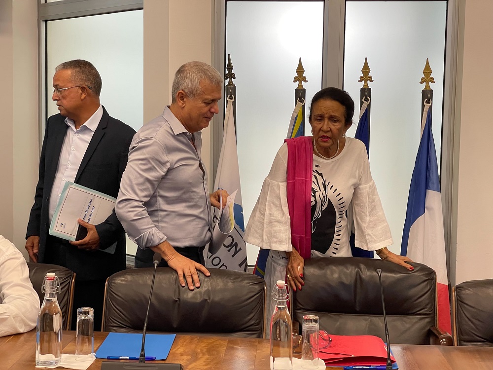« Toilettage », « dépoussiérage » ok, mais « pas suppression ». Et surtout « concertation », « pas de réforme arbitraire, imposée » : c’est en substances le message de l’union sacrée des politiques et des acteurs économiques réunis ce mercredi jeudi 14 mars à la Région autour de la présidente Huguette Bello. A l’exception de la Chambre de commerce et d’industrie de la Réunion « excusée » a dit la présidente de Région, les autres représentants des chambres consulaires ont répondu à l’appel de la Région. Bruno Robert a représenté le président Frédéric Vienne de la Chambre verte, Philippe Puisségur a représenté Didier Fauchard du Medef, Gérard Lebon de la CPME a fait le déplacement jusqu’à la pyramide inversée. Idem pour le président de la Chambre des métiers et également conseiller régional de l’opposition, Bernard Picardo. D’autres élus comme Cyrille Melchior, président du Département et Serge Hoareau, président de l’Association des maires de la Réunion (AMDR) ont dit « oui » à Huguette Bello. Sans oublier le conseiller régional Wilfrid Bertile et certains maires comme Patrick Lebreton (Saint-Joseph), Emmanuel Séraphin (Saint-Paul), Joé Bédier (Saint-André) et Jeannick Atchapa (Bras-Panon).