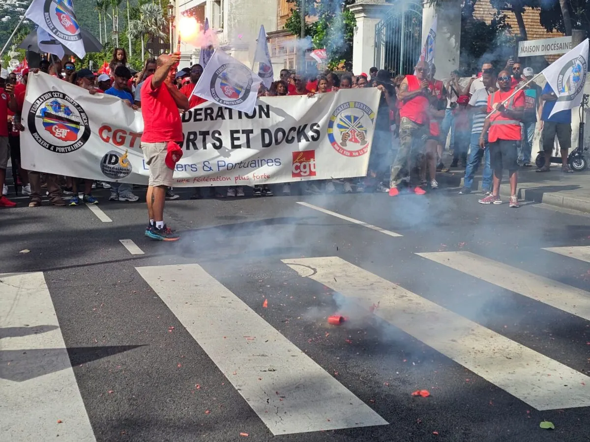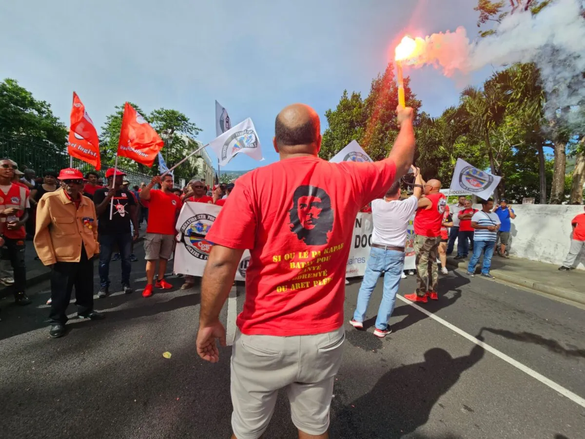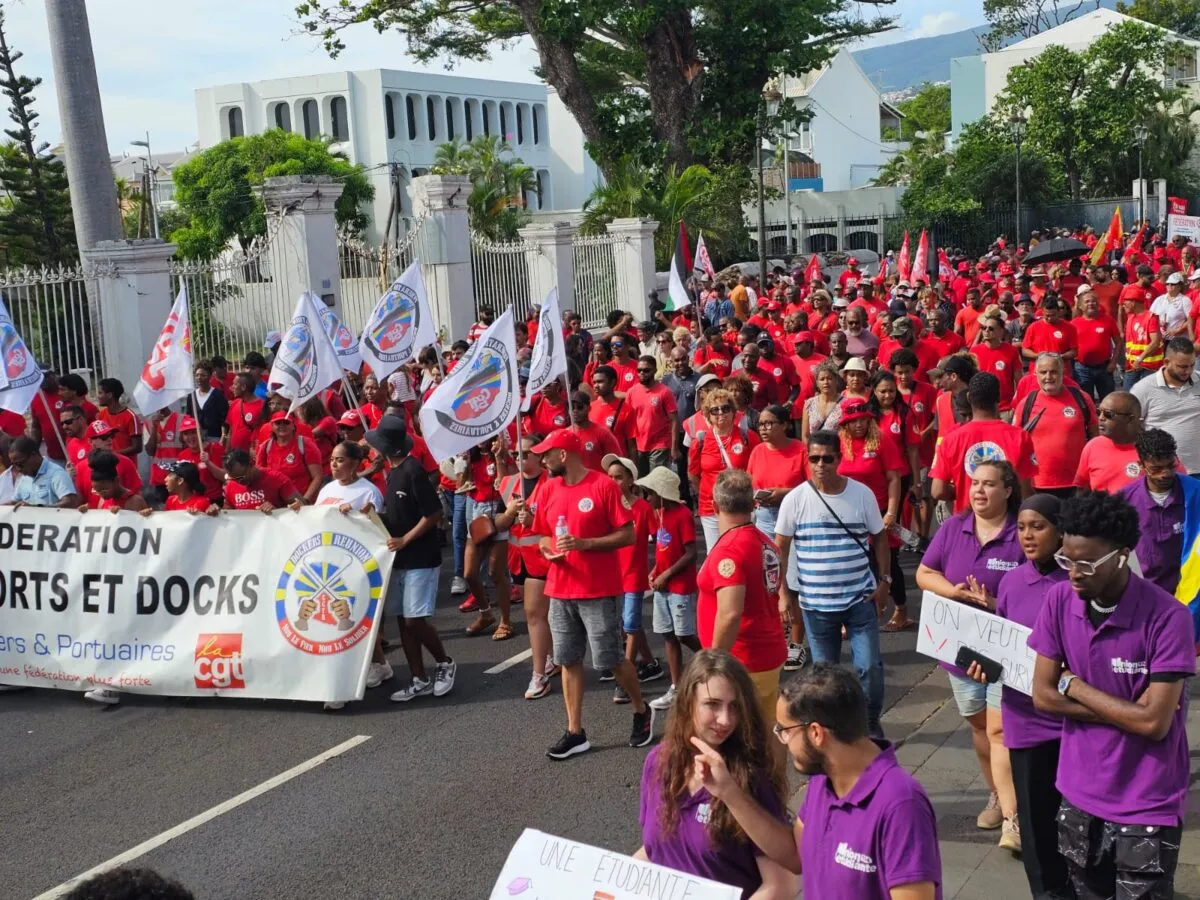Ce mercredi matin, comme annoncé, la mobilisation a bien débuté à l’appel de la CGTR. Selon notre reporter Karoline Chérie, l’ambiance est restée bon enfant pour ce début de défilé qui rassemble environ 700 à 800 personnes.