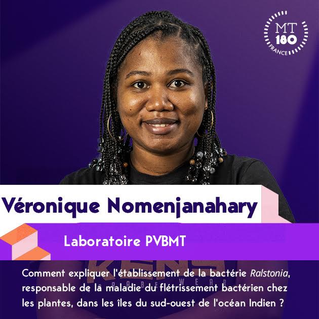 Véronique NOMENJANAHARY, du laboratoire Laboratoire Peuplements végétaux et bioagresseurs en milieu tropical (PVBMT) a remporté le premier prix du jury avec sa prestation portant sur sa thèse « Comment expliquer l’établissement de la bactérie Ralstonia, responsable de la maladie du flétrissement bactérien chez les plantes, dans les îles du sud-ouest de l’océan Indien ?« .