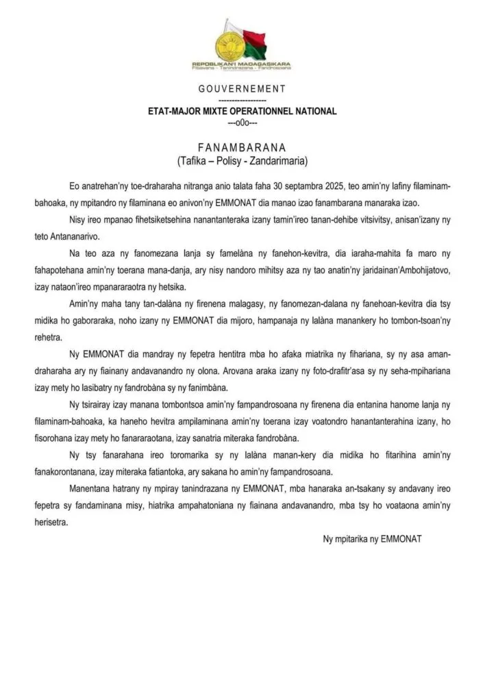 Face aux événements survenus ce mardi 30 septembre 2025, en matière de sécurité publique, les forces de l’ordre réunies au sein de l’EMMONAT publient le communiqué suivant.