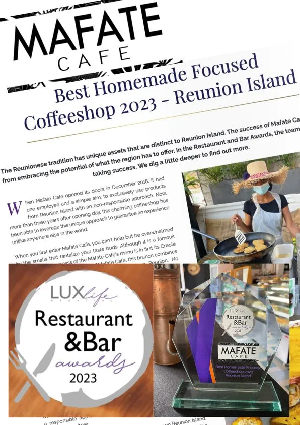 C’est la première fois qu’un établissement réunionnais est récompensé par LUX-LIFE Magazine. Une belle récompense à l’international, accueilli avec fierté par toute l’équipe du Mafate Café qui se démène au quotidien pour faire rayonner La Réunion.