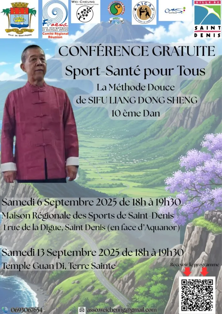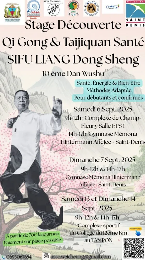 En parallèle, des stages pratiques de Qi Gong et de Taiji Quan se tiendront les 6 et 7 septembre à Saint-Denis, puis les 13 et 14 septembre au Tampon. Ces séances, accessibles à tous, offriront une immersion dans ces techniques ancestrales visant à harmoniser le corps et l’esprit.