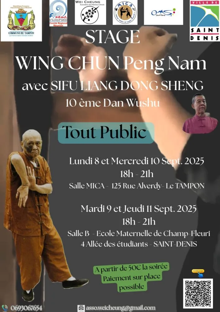 Maître Liang Dong Sheng animera également des ateliers de Wing Chun Peng Nam, un style rare de Kung Fu dont il est le dernier héritier direct, offrant ainsi une opportunité exceptionnelle aux passionnés et curieux de s’initier à cette discipline unique.
