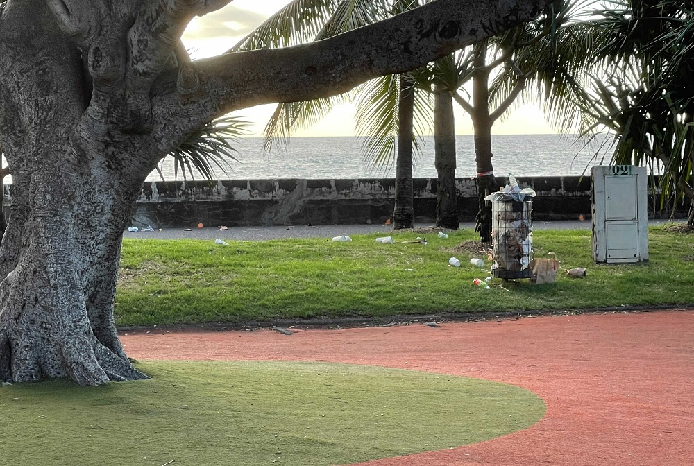 Quant au Barachois, la saleté y règne depuis des années. « Haut lieu touristique », mal entretenu. Naturellement personne n’est responsable, ni la mairie, ni la Cinor. Circulez, y a rien à voir. D’ailleurs, c’est vrai, y a vraiment quasiment rien à voir dans le coin, peut-être la mer, et encore ! Tout y est fait avec si peu de goût !