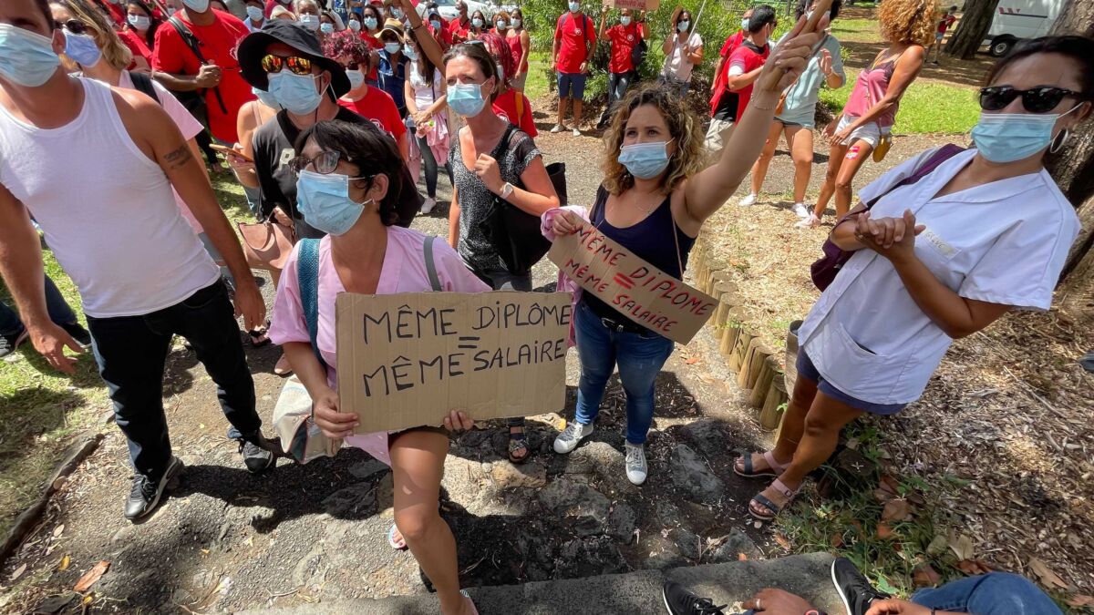 Ils manifestent pour l’augmentation de tous les salaires des Réunionnais qui seraient « sous payés », les changements dans la fonction publique, manque de communication avec la rectrice, ou encore  la réforme de l’assurance chômage qui va pénaliser ceux qui perçoivent l’ARE, l’allocation de retour à l’emploi.