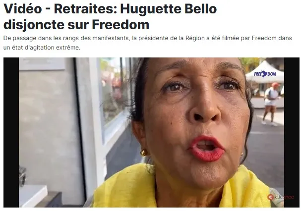 Le passage de la présidente de la Région, Huguette Bello dans les rangs des manifestants,  ainsi que l’interview qu’elle a accordée à nos journalistes, ne sont pas passés inaperçus par nos confrères de Clicanoo qui a repris une partie de la vidéo et diffusée sur son site.