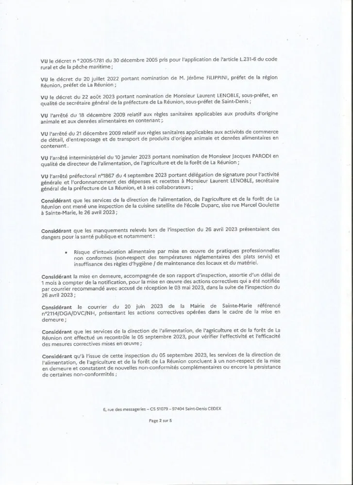 Manque d’hygiène : la DSV ordonne la fermeture de la cuisine centrale de Sainte-Marie; Découvrez l’arrêté du préfet !
