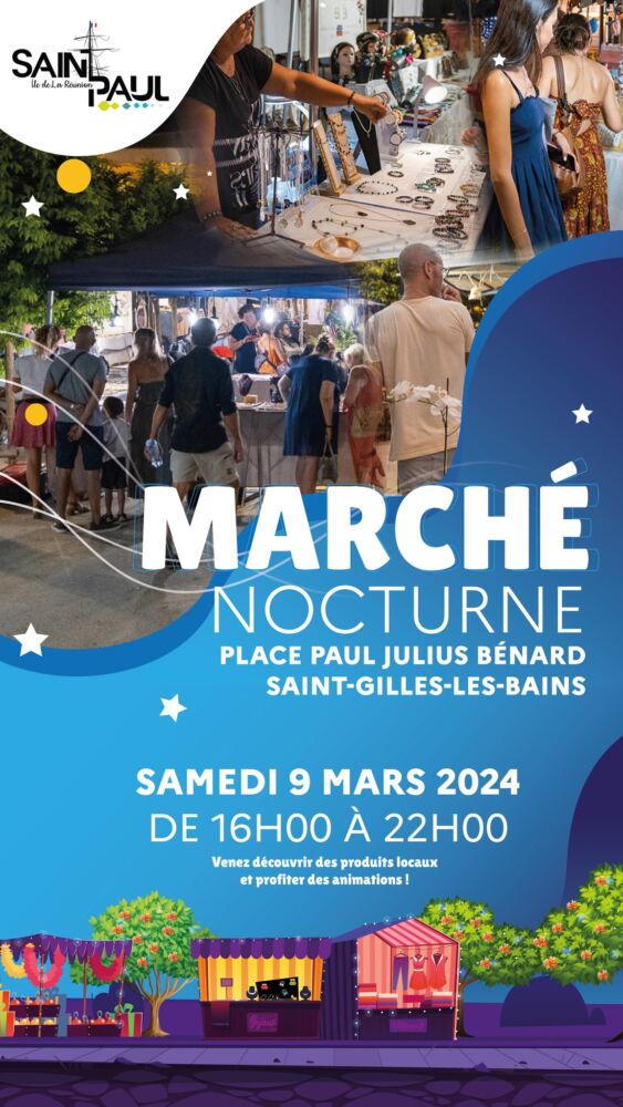 Actualités/Collectivités/Saint-Paul Marché nocturne à Saint-Paul : Saveurs locales et ambiance animée ce 9 mars par Céline Hardelain 29 février 2024 1 min de lecture Ce samedi 9 mars 2024 aura lieu le marché nocturne de St-Paul. Découvrez une variété de produits locaux et profitez des animations dans une ambiance conviviale. Fruits frais, délices sucrés, artisanat local : il y en aura pour tous les goûts ! Ne manquez pas toute l’actualité de La Réunion ! Abonnez-vous à la newsletter de Free Dom ! Valider Partager Facebook Twitter Pinterest Linkedin Whatsapp Reddit Email Vous pourriez être intéressé par 2 janvier 2026 1 janvier 2026 Jeudi 1ᵉʳ janvier 2026 – Météo, éphéméride et horoscope du jour 31 décembre 2025 Mercredi 31 décembre 2025 – Météo, éphéméride et horoscope du jour Céline Hardelain Laisser un commentaire Annuler la réponseYour email address will not be published. Enregistrer mon nom, mon e-mail et mon site dans le navigateur pour mon prochain commentaire. Current ye@r * Leave this field empty Article précédent Nouvelle aérogare Roland Garros, prête à accueillir ses premiers passagers dans quelques semaines Article suivant Édouard Philippe visite le « Village Réunion » Articles récents... Jeudi 1ᵉʳ janvier 2026 – Météo, éphéméride et horoscope du jour Mercredi 31 décembre 2025 – Météo, éphéméride et horoscope du jour Hommage à Johnny Hallyday sur Free Dom 2 ce 5 décembre Mardi 30 décembre 2025 – Météo, éphéméride et horoscope du jour Saint-Joseph : découverte de 2337 plants de cannabis, arrestation de 2 individus Point sur le réseau routier départemental, 29 décembre à 16H30 Suicide sur le pont de la Rivière d’Abord : importante mobilisation des secours et des forces de l’ordre Radier submergé à Ilet Furcy : la route de Cilaos fermée à la circulation cette nuit Fortes pluies : appel à la plus grande prudence à Saint-Paul