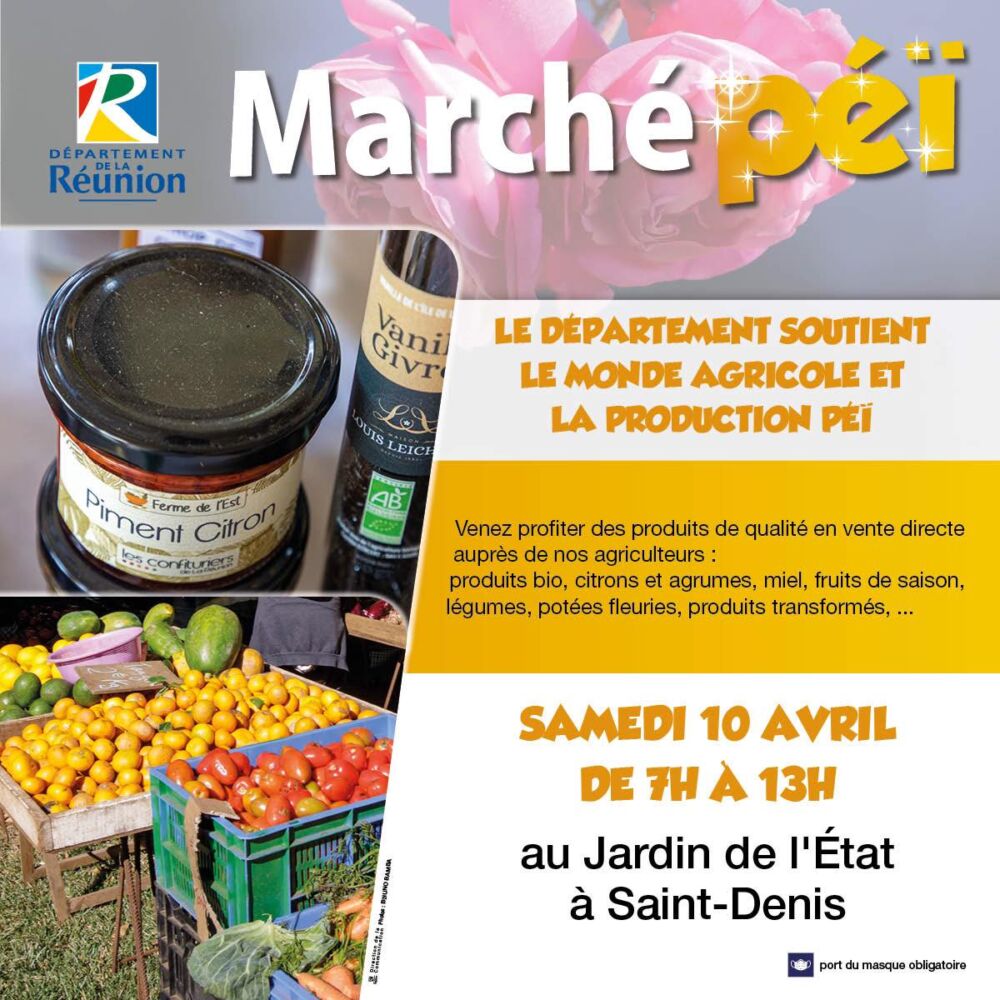 Collectivités/Conseil Départemental Marché Péï au Jardin de l’Etat ce samedi 10 avril par La Rédaction 10 avril 2021 1 min de lecture Allez une idee sortie ça fait du bien, surtout qu’on peut y trouver de bons produits. Rendez-vous ce Samedi 10 avril de 7h à 13h au Jardin de l’Etat pour une nouvelle édition du Marché Péi. Le détail de ce qui sera proposé est ci dessous : Ne manquez pas toute l’actualité de La Réunion ! Abonnez-vous à la newsletter de Free Dom ! Valider Partager Facebook Twitter Pinterest Linkedin Whatsapp Reddit Email Catégorie: marché péi Vous pourriez être intéressé par 29 décembre 2025 Point sur le réseau routier départemental, 29 décembre à 16H30 29 décembre 2025 Fortes pluies : appel à la plus grande prudence à Saint-Paul 29 décembre 2025 Intempéries : radiers submergés à Trois Bassins et à Saint-Paul La Rédaction Laisser un commentaire Annuler la réponseYour email address will not be published. Enregistrer mon nom, mon e-mail et mon site dans le navigateur pour mon prochain commentaire. Current ye@r * Leave this field empty Article précédent CIVIS : feu vert financier pour le TCSP Article suivant « Pas d’augmentation d’impôts à Bras-Panon ! » (VIDÉO) Articles récents... Mercredi 31 décembre 2025 – Météo, éphéméride et horoscope du jour Hommage à Johnny Hallyday sur Free Dom 2 ce 5 décembre Mardi 30 décembre 2025 – Météo, éphéméride et horoscope du jour Saint-Joseph : découverte de 2337 plants de cannabis, arrestation de 2 individus Point sur le réseau routier départemental, 29 décembre à 16H30 Suicide sur le pont de la Rivière d’Abord : importante mobilisation des secours et des forces de l’ordre Radier submergé à Ilet Furcy : la route de Cilaos fermée à la circulation cette nuit Fortes pluies : appel à la plus grande prudence à Saint-Paul Saint-Gilles-les-Bains : une route impraticable, les riverains montent au créneau (VIDEOS) Très grands excès de vitesse : un délit passible de prison depuis le 29 décembre 2025
