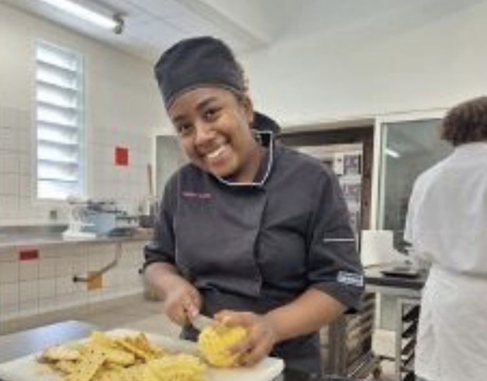 Marine Guignard est âgée de 17 ans, elle est titulaire d’un CAP Pâtissier , apprentie en Mention Complémentaire Pâtisserie Glacerie, Chocolaterie Confiserie à Macaron à Saint-Paul.