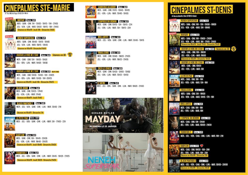 Quoi de mieux qu’une bonne séance de cinéma pour oublier le stress de la rentrée ? Découvrez sans plus attendre notre sélection de films à découvrir dans les cinémas de l’île pour la semaine du 25 janvier 2023.