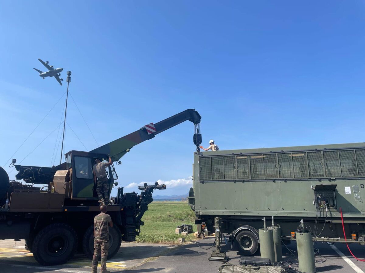 Transportée par un avion militaire A400M pour la première fois, cette vigie mobile a été installée en moins de 24 heures grâce au travail conjoint des techniciens de l’escadre aérienne de commandement et de conduite projetable (EAC2P) et des contrôleurs aériens venus de plusieurs bases métropolitaines.