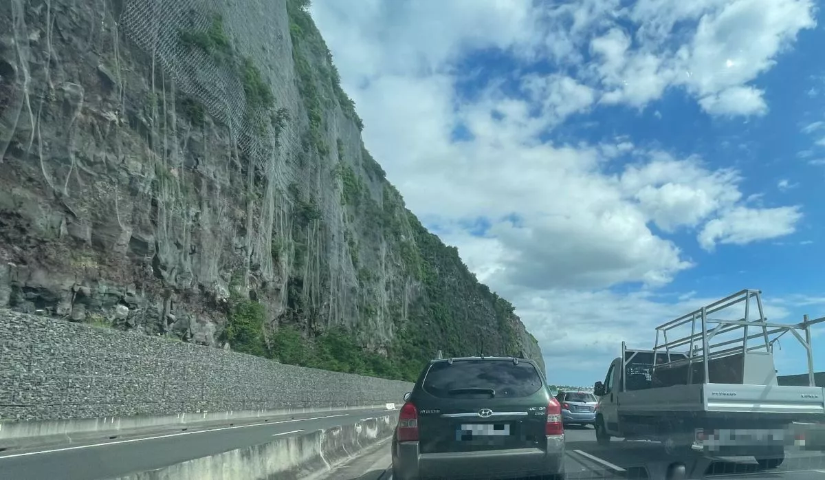 La route du Littoral en mode basculé sur la chaussée côté mer