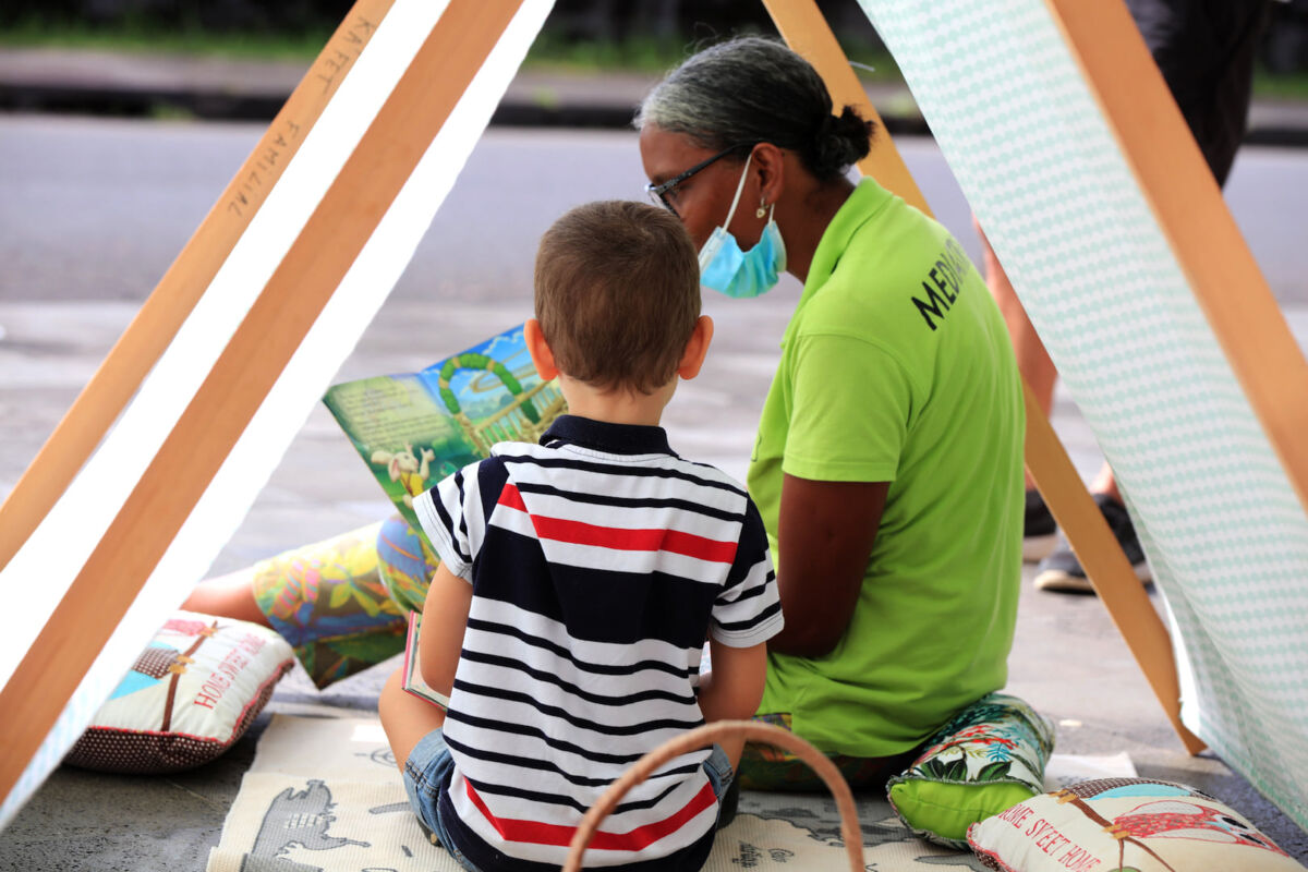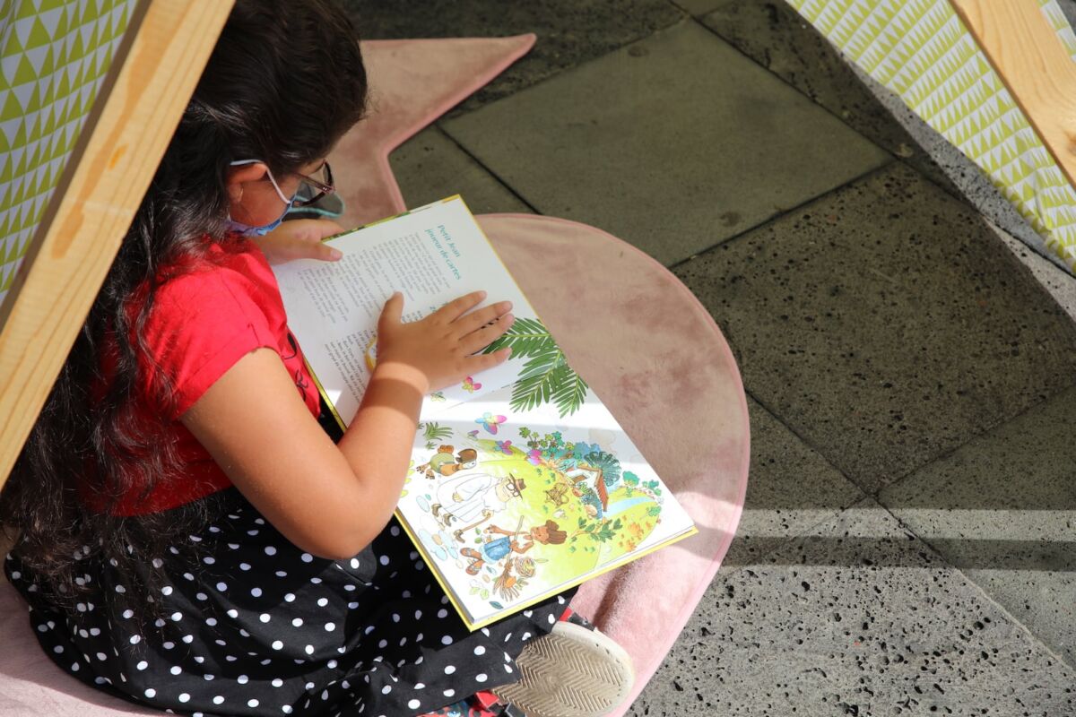 L’association Ka’fet Familial a proposé aux plus petits son animation de livres mobiles sur le parvis de la médiathèque. Le jeune public a été séduit par cette animation autour du livre péi.