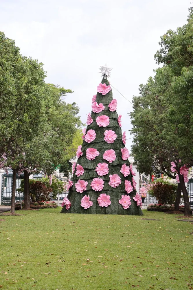 Vous pourrez y découvrir un sapin et de très belles décorations en papier blanc et rose.