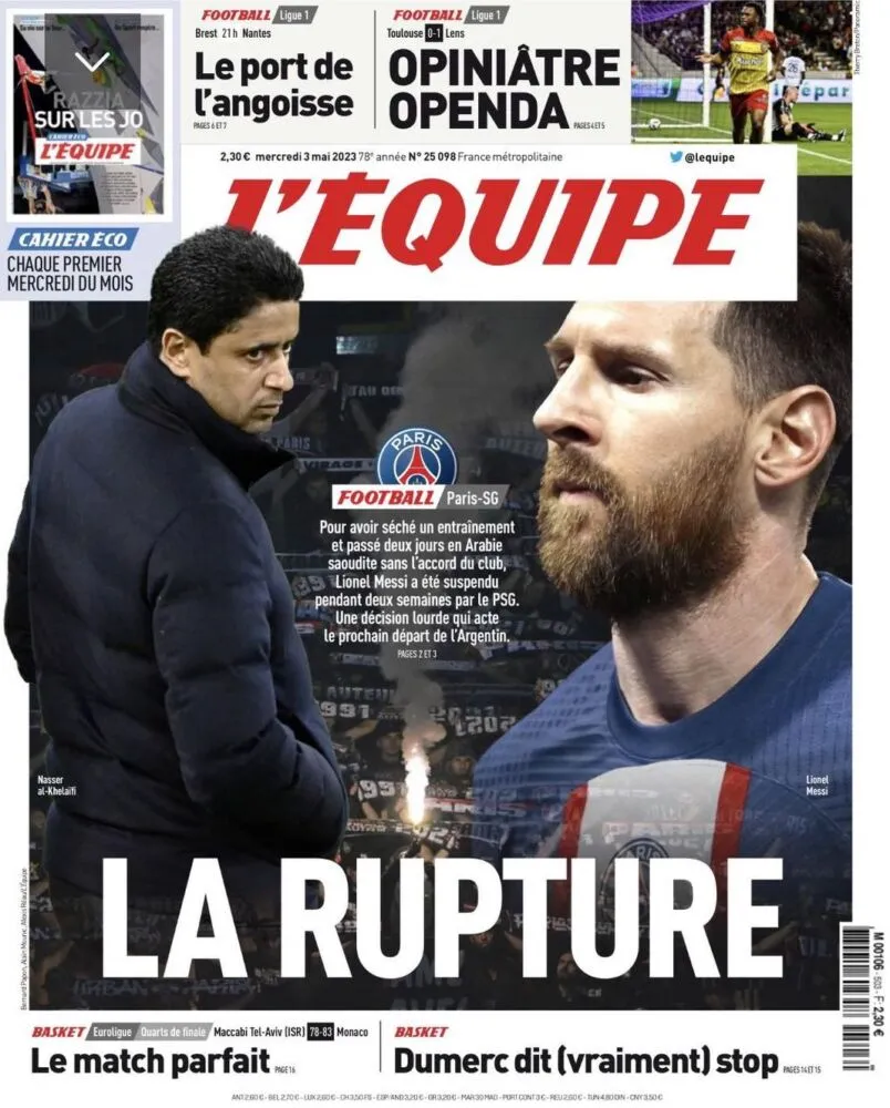 Grosse colère des dirigeants du PSG après le départ de Lionel Messi en Arabie saoudite, quelques heures après la cuisante défaite de son équipe à domicile 1 – 3, face à Lorient samedi 29 avril.