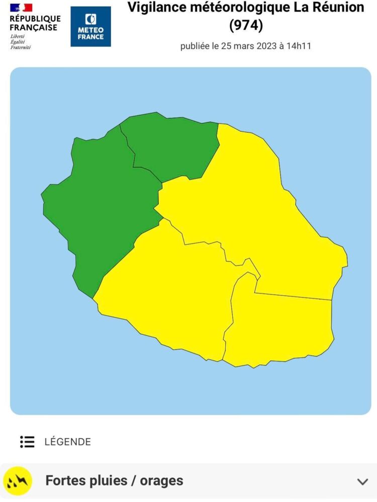 Ce 25 mars une vigilance jaune fortes pluies et orages était en cours.