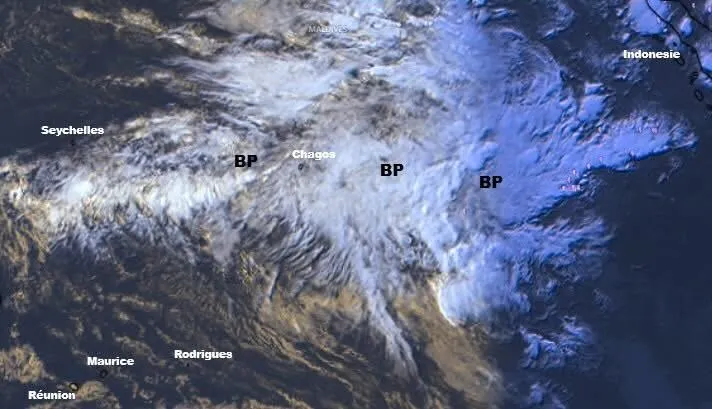 Selon Météo-France Réunion, deux circulations dépressionnaires se développent actuellement le long de la Zone de Convergence Intertropicale, à l’est de Diego Garcia. Localisés respectivement autour des points 6° Sud / 75° Est et 3° Sud / 83° Est, ces systèmes restent pour l’instant faiblement structurés et d’intensité limitée. Mais l’activité convective dans la région demeure soutenue, signe d’un environnement favorable à une évolution ultérieure.