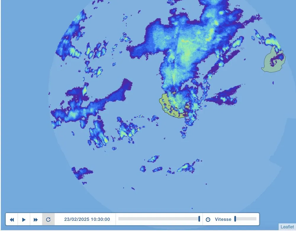 Sous un voile de nuages élevés occultant par moments le soleil, les pluies ayant touché le Nord et l’Est de l’île s’estompent progressivement et c’est un temps majoritairement nuageux dans l’intérieur qui prévaut pour cet après-midi. Des averses d’intensité parfois modérée, se déclenchent alors sur les hauteurs de l’Ouest et du Sud-Ouest principalement. Celles-ci glissent localement vers le rivage au fil des heures entre Saint-Paul et Saint-Leu notamment. Un coup de tonnerre peut même se faire entendre. Les éclaircies reviennent par le Nord-Est.